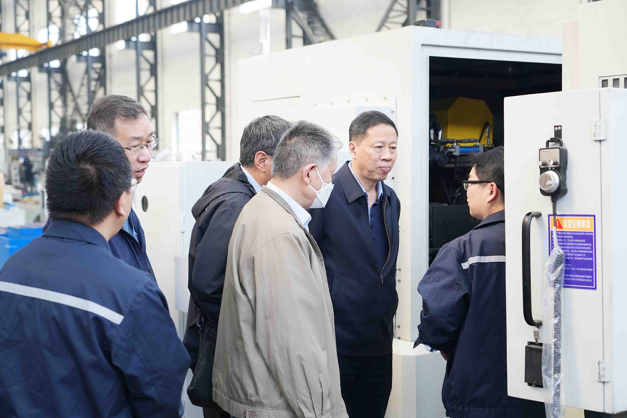周宇理事長一行深入到我司生產車間進行了現場考察,先后察看了超大型內/外圈磨床生產及中大型滾子磨床調試現場,詳細了解了我司的生產狀況和新技術應用情況,并和現場人員進行技術交流。周宇理事長對我司鐵路軸承磨床和卡車輪轂軸承設備精度和連續加工穩定性給予高度肯定,對我司在滾子磨床領域的研發創新表示認可。現場考察結束后,與我司領導層進行了深入的座談交流。